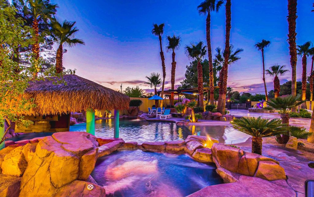 - Two resort-style pools, including a grotto, waterfalls & swim-up bar
