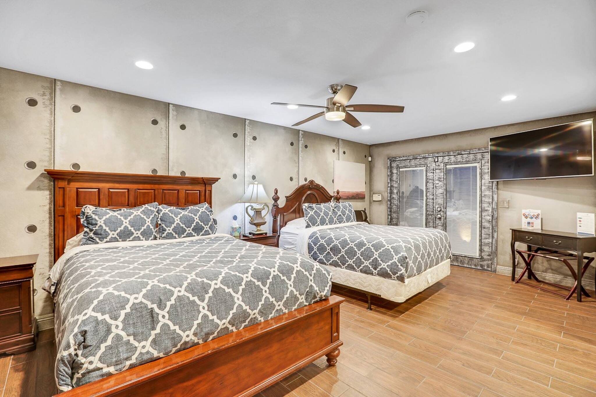 Every inch of D&D Mansion is designed to impress. The grand salon welcomes you with cathedral ceilings and Venetian detailing, while multiple lounges, a library, and a game room offer spaces to unwind. The mansion includes 12 bedrooms and 20 beds, each beautifully appointed with plush bedding and ensuite baths. The home’s 13 bathrooms are complete with luxury finishes.