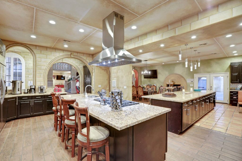 - Five kitchens, including a full professional chef’s kitchen & 3,000-bottle wine cellar